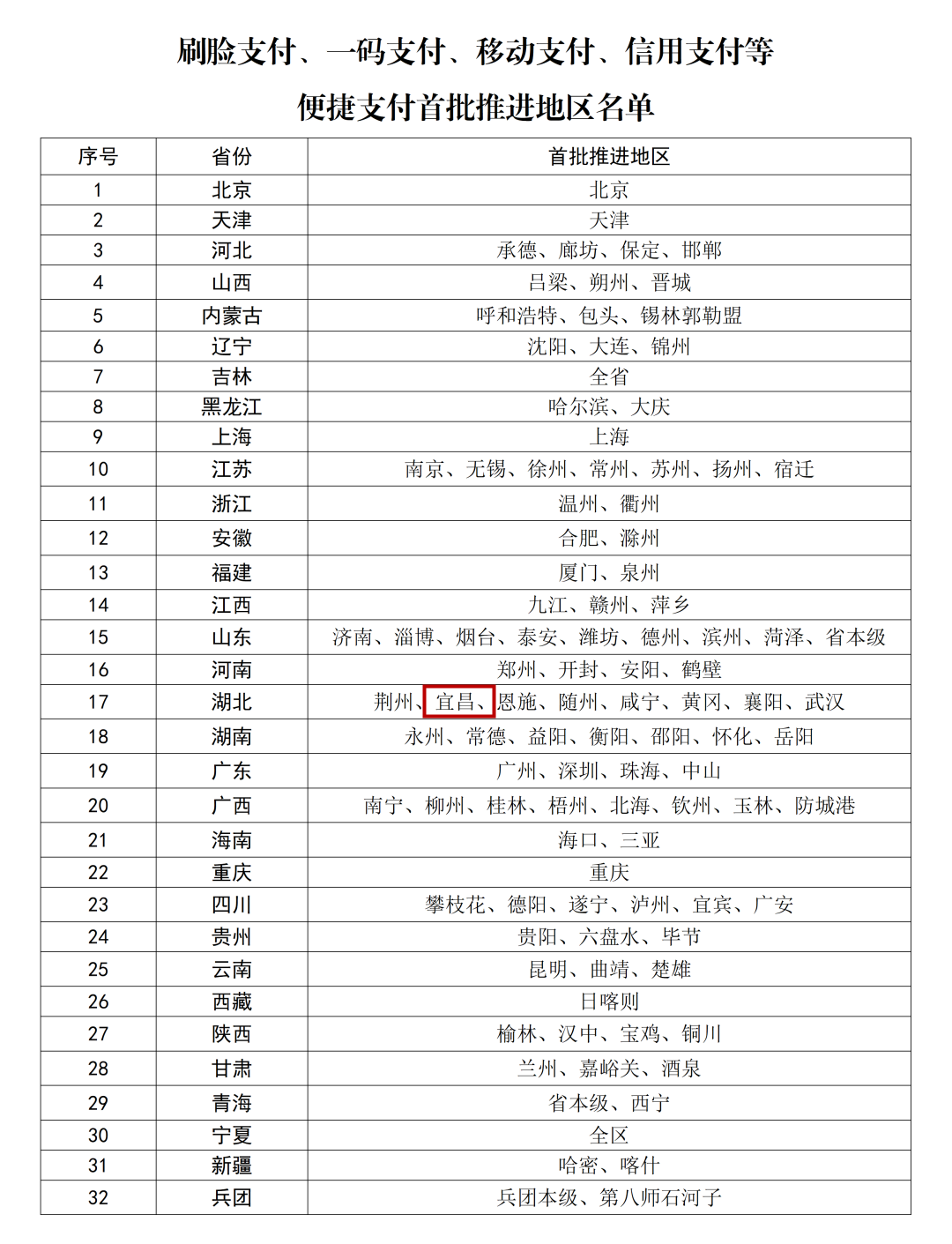 国家医保局公布的《刷脸支付、一码支付、移动支付、信用支付等便捷支付首批推进地区名单》显示,湖北有8地入选,宜昌是其中之一。