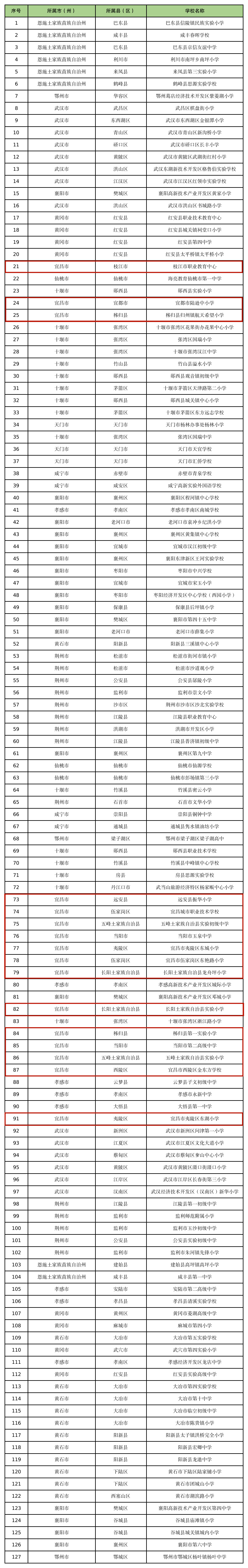 其中宜昌有16所学校入选